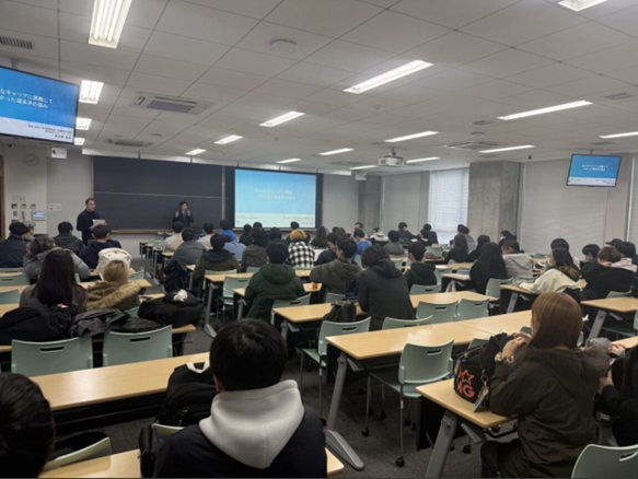 2025年12月10日、神奈川工科大学の生物学を学ぶ1年生80名に対して、『いろいろなキャリアに挑戦して分かった理系卒の強み』と題して具志堅智彦会員による特別講義が行われました。