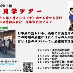 2月28日(土)に神奈川県厚木市七沢の黄金井酒造株式会社様の酒蔵見学ツアーを企画しましたのでご案内いたします。