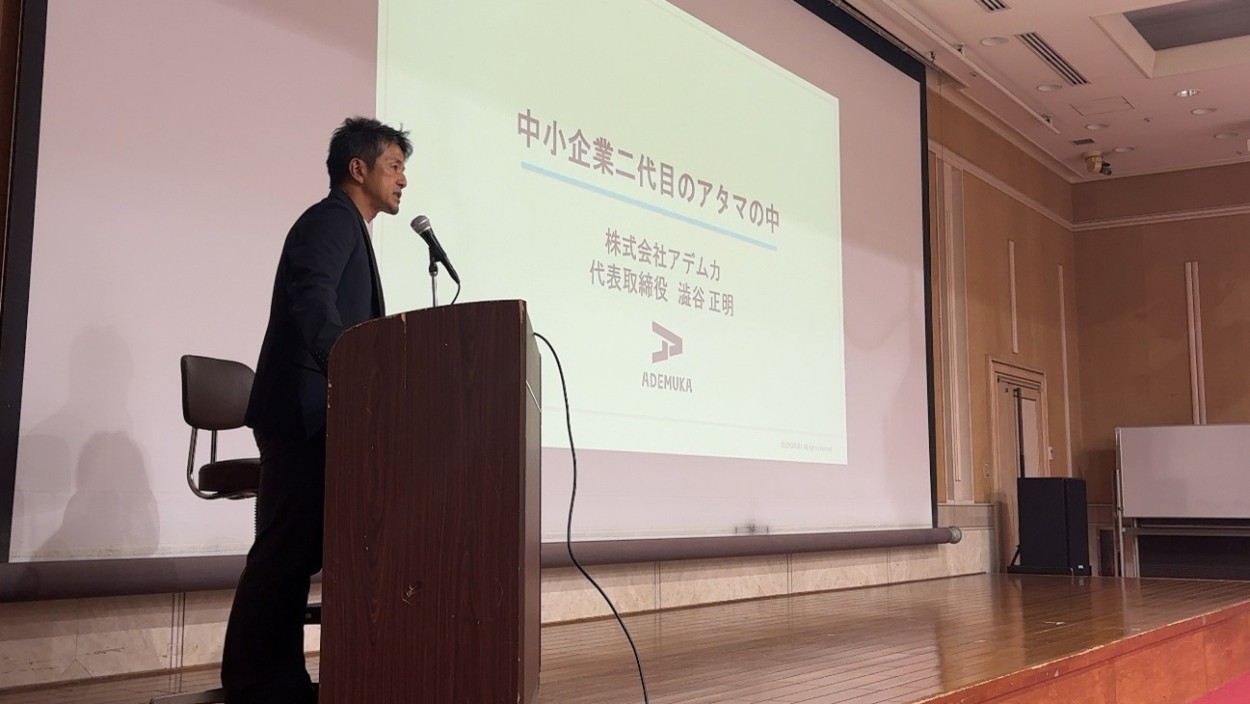 2025年8月9日(土)、理論政策更新研修にて株式会社アデムカ 代表取締役 澁谷正明様より、『中小企業2代目のアタマの中』のテーマで、ご講演をいただきました。