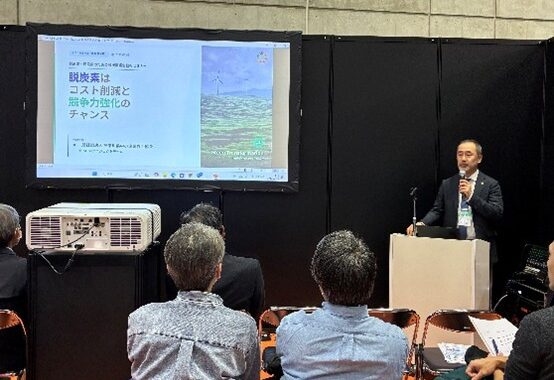 セミナーのトップバッターは「脱炭素の取り組みでがっちり経営」~脱炭素経営でバッチリ経営改善~について基礎編として、これから脱炭素の取り組みをはじめる方を対象として、誰でも、いつでも始めることができることについて柳沼会員から説明しました。その後、実践編として具体的な取組事例など、より踏み込んだ内容を山本会員から説明がありました。