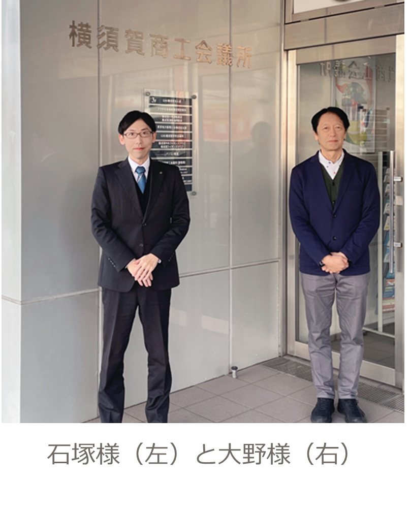 横須賀という地域は、米海軍基地を擁し、港湾、観光、農業、商業、製造業など、多様な産業が重層的に存在しています。個人商店から中小製造業、サービス業まで事業者の裾野は広く、地域経済の構造も極めて多彩です。こうした横須賀の産業と事業者を長年にわたって支えてきた存在が、横須賀商工会議所様です。今回は同会議所の産業・地域活性課の石塚健介様と同会議所と連携する中小企業診断士(以下、診断士)の大野順弘様(神奈川よろず支援拠点・横須賀サテライト)にこれまでの取り組みと商工会議所との連携・活用について伺いました。